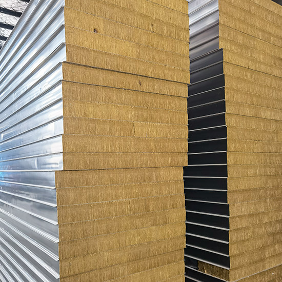 巖棉彩鋼夾芯板其芯材是以玄武巖及其它天然礦石等為主要原料,經(jīng)高溫熔融成纖維,加入適量粘結(jié)劑,固化加工而制成的。是同類(夾芯板系列)中耐火性能最強(qiáng)的一種新型防火板材。